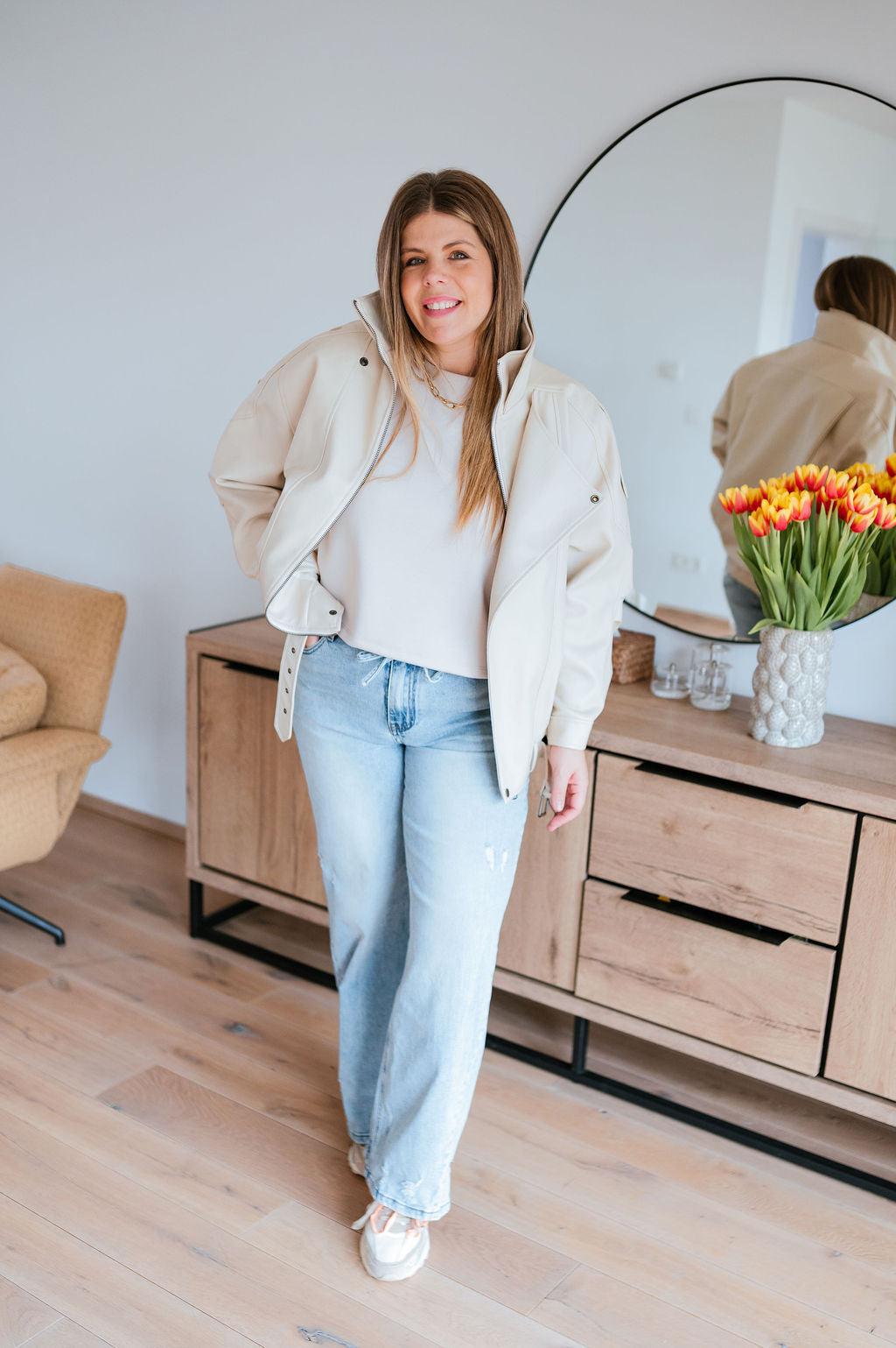 Nadia porte la taille L/XL, correspond habituellement à un 42.