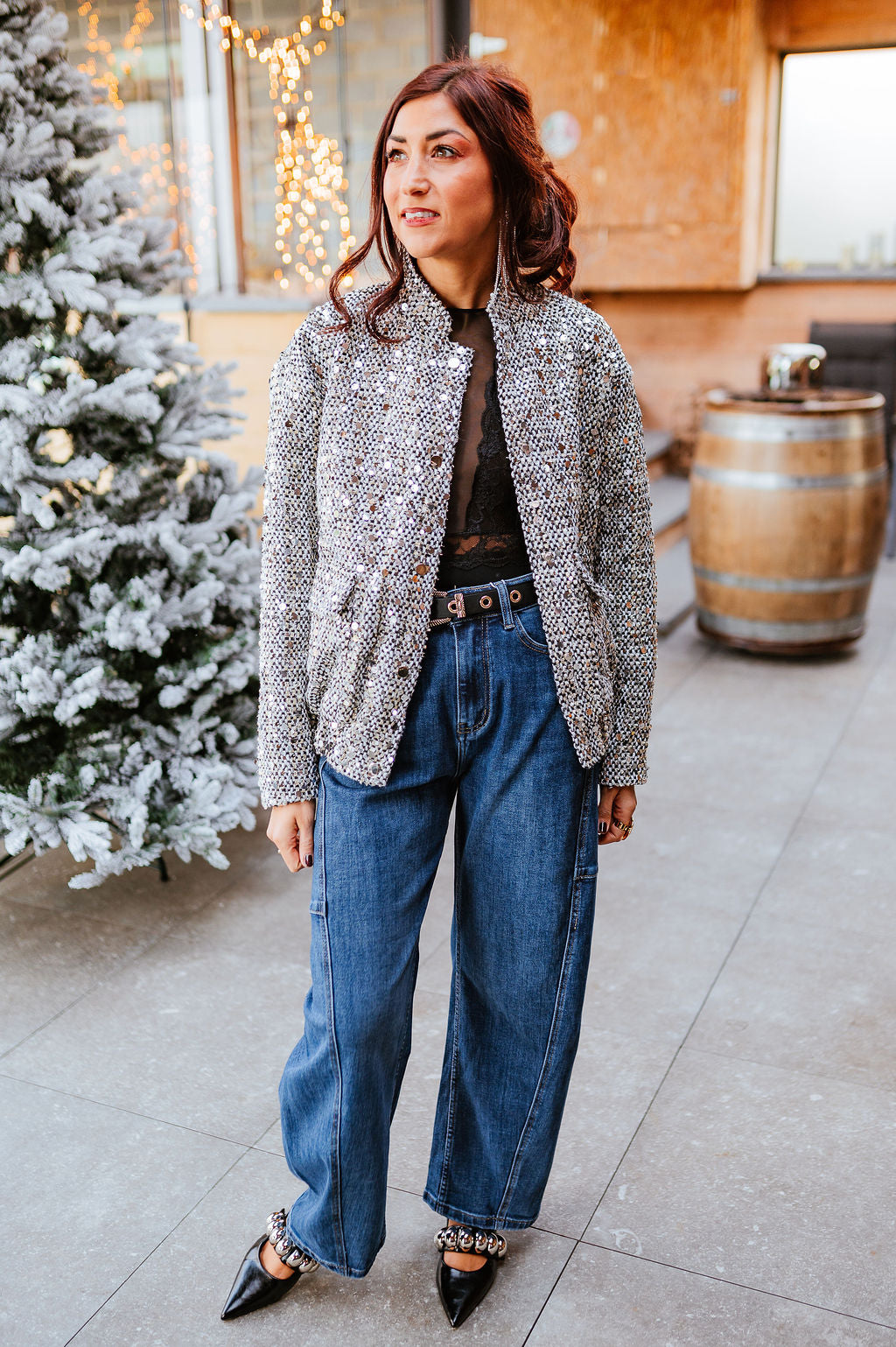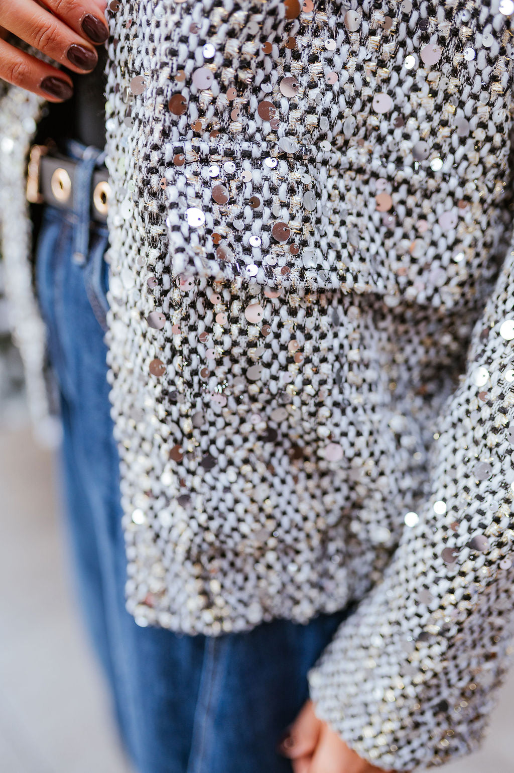 - Color: Silver sequins