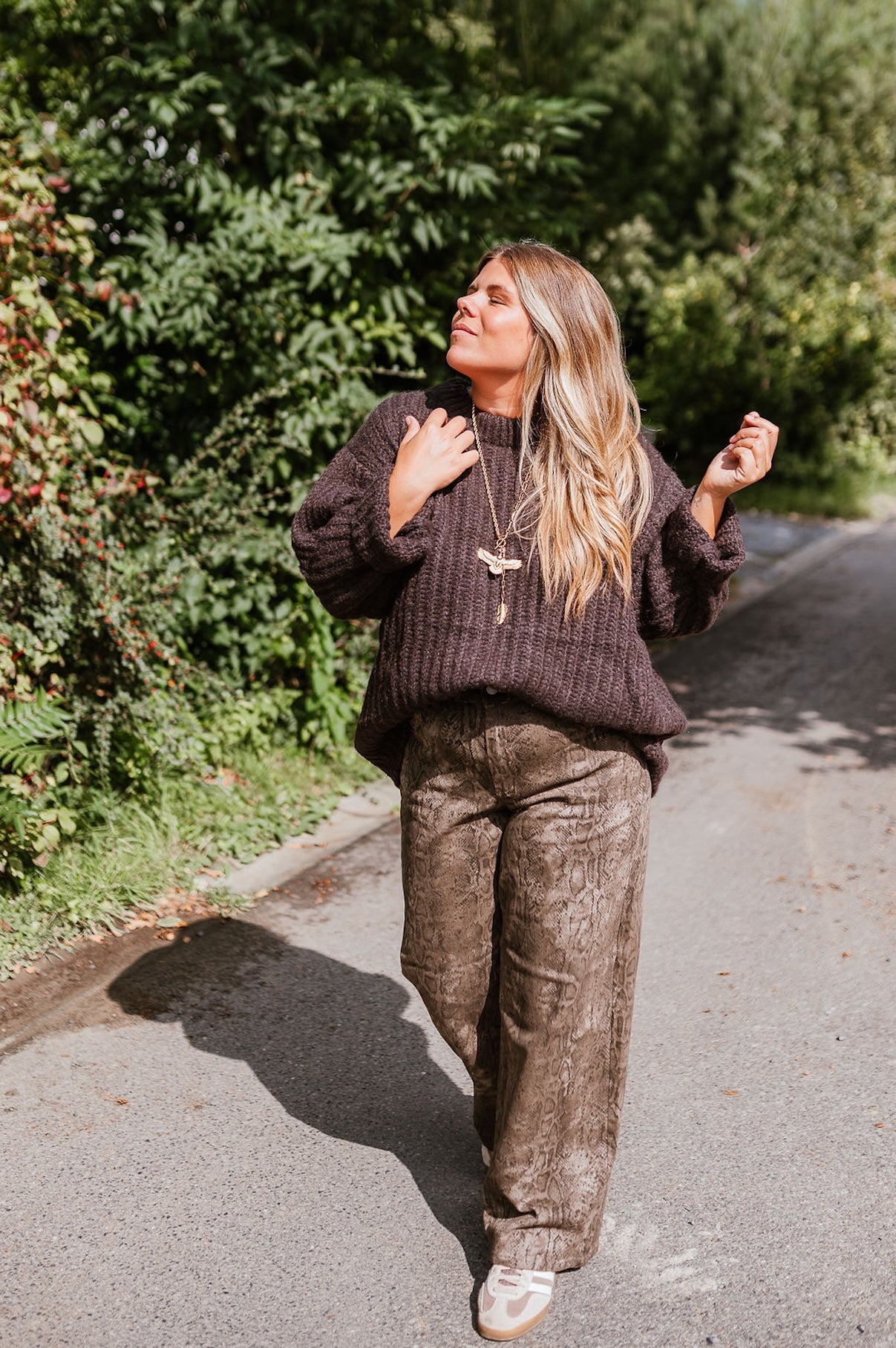 - Loose-fitting model
