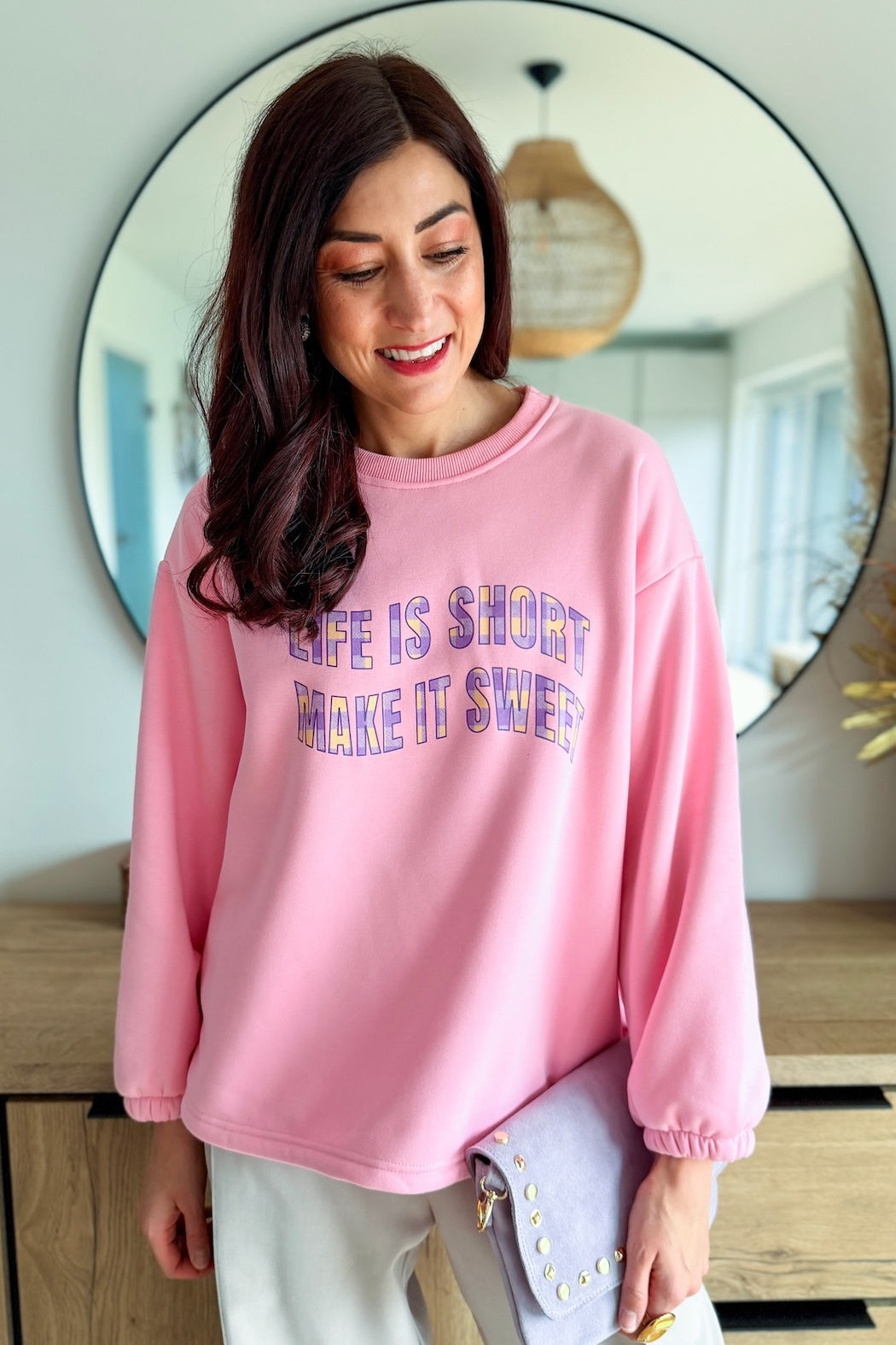 • Color: Pink - inscription "Life is short make it sweet" in purple