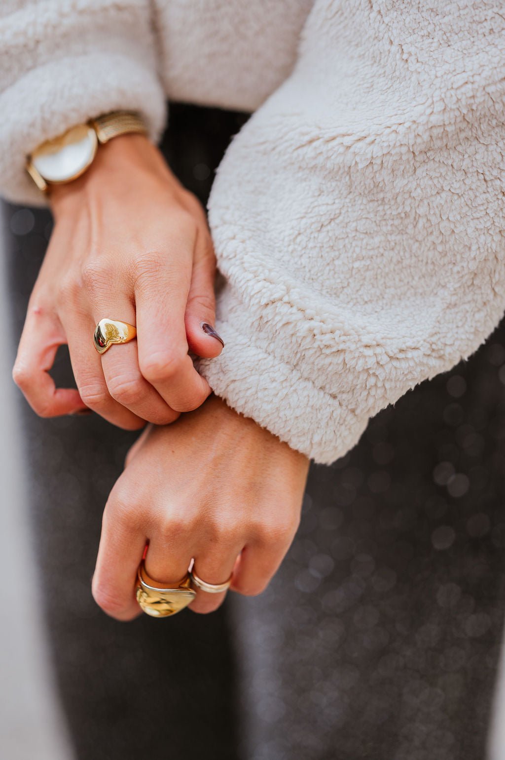 - Sophie lleva la talla M para un efecto más holgado, suele usar talla 36 y mide 1,69 m