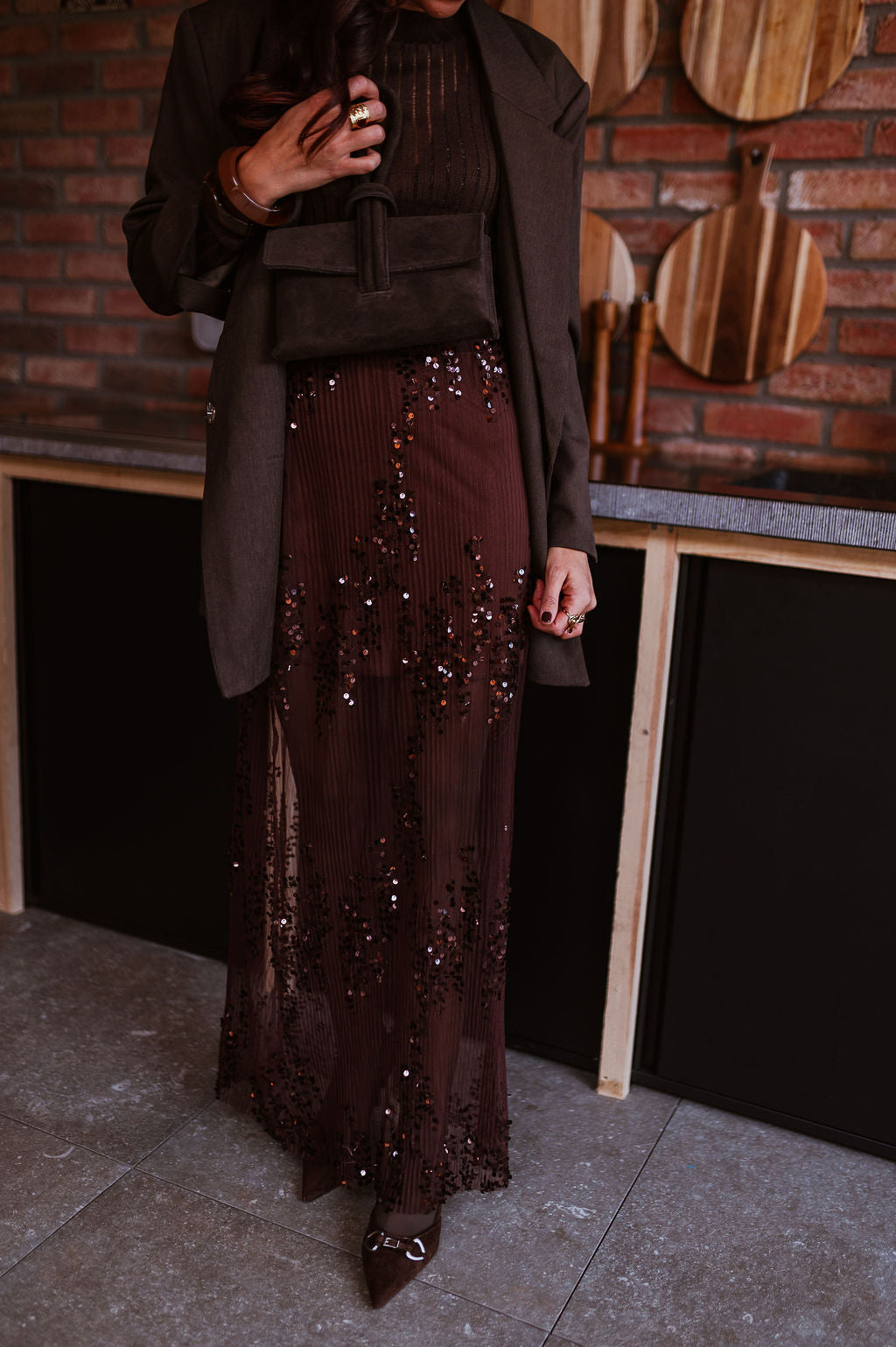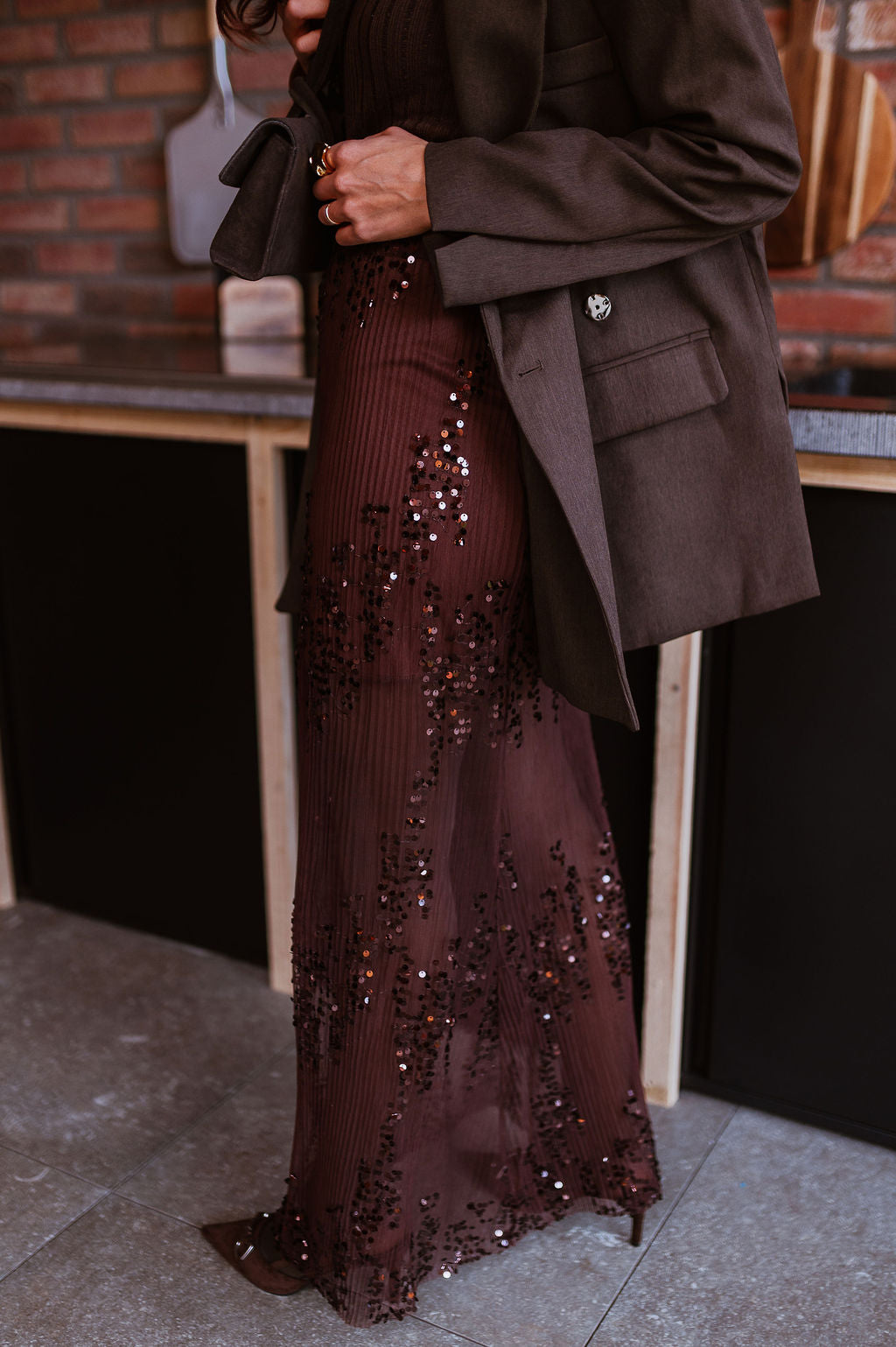 - Couleur : Marron avec sequins